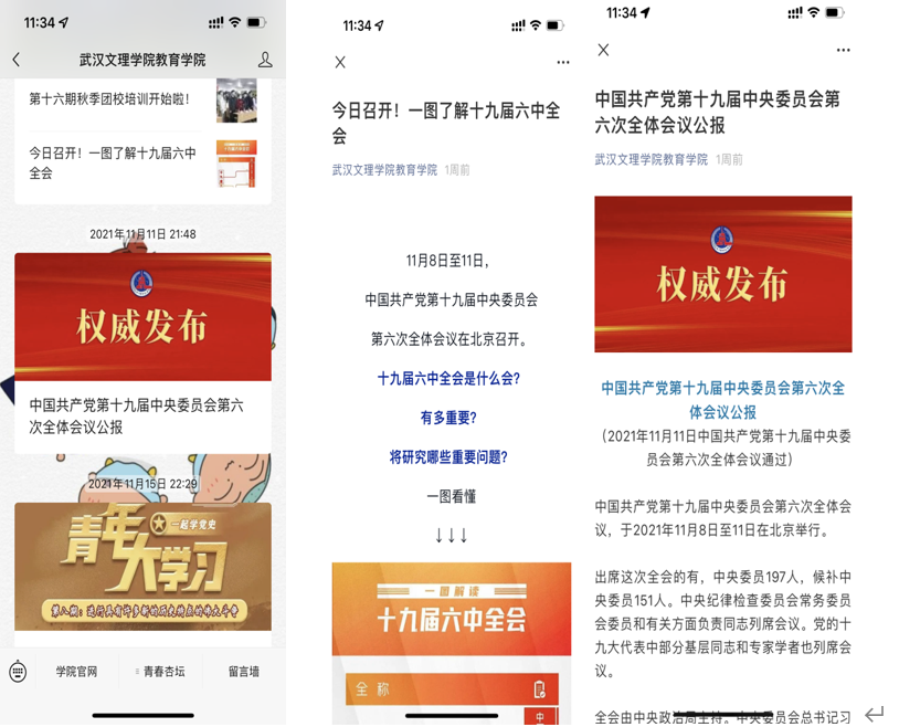 11月15日至22日,太阳成tyc33455ccwww员工党支部联合公司分团委组织部在公司各团支部开展“学习十九届六中全会重要精神”主题团日活动,大一年级各团支部利用晚自习时间开展,其他年级采用线上线下相结合的形式陆续开展有关活动。