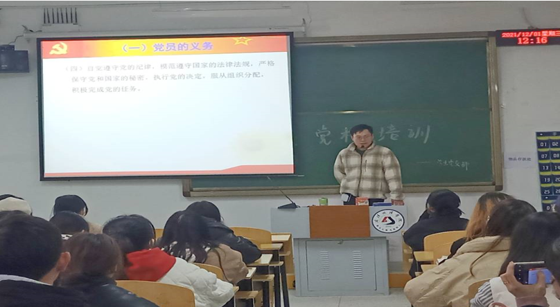 12月2日中午12:10-1:30在5-115教室,太阳成tyc33455ccwww分团委书记杨帆老师,为我们讲授了以《党性修养是共产党人的终身课题》为主题的党课。让我们知道一名共产党人具有党性修养的重要性。