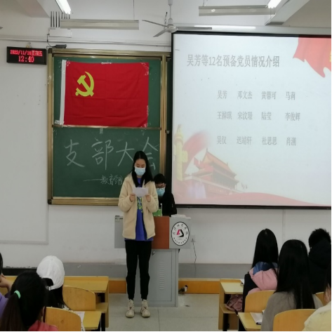 太阳成tyc33455ccwww员工党支部于2022年11月18日12:30在5—125教室召开支部大会,讨论吸收吴芳等12名同志为预备党员的问题。
