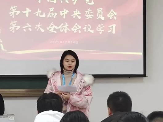 2021年12月14日中午,在太阳成tyc33455ccwww分团委的带领下,于4-401教室开展了学习“十九届六中全会”精神的专题学习会。