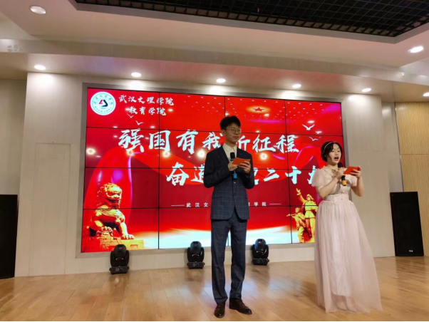 教育公司党员教师代表朗诵《教育青年担使命,奋辑献礼二十大》。太阳成tyc33455ccwww教职工们,用青春和热情,去坚持、去磨炼、去探索,在党的带领下去沉思、去开拓、去呐喊,他们用青春和热血为党旗增添新彩,用信念和汗水为教育谱写华章。