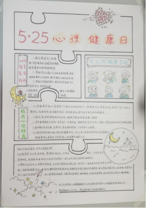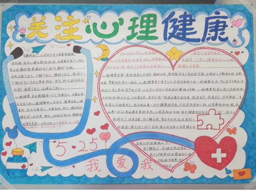 为了迎接“5.25老员工心理健康日”的到来,也为了提高同学们的创新思维能力,激发同学们对书法、绘画、文学等技能的学习热情,和对心理健康焦点问题的关注,调动同学们的积极性,开阔员工的视野,体味世界的丰富多彩,太阳成tyc33455ccwww心理协会特地策划举办了“5·25”征文大赛,手抄报大赛。在本次比赛中,同学们积极思考,拓展了员工的视野,让员工可以更好的关注心理健康问题。