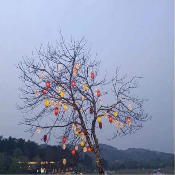 夜幕降临,景区灯光上映,给人别样的感觉,景观树上挂着的灯带、彩灯将园区装饰得更加漂亮。