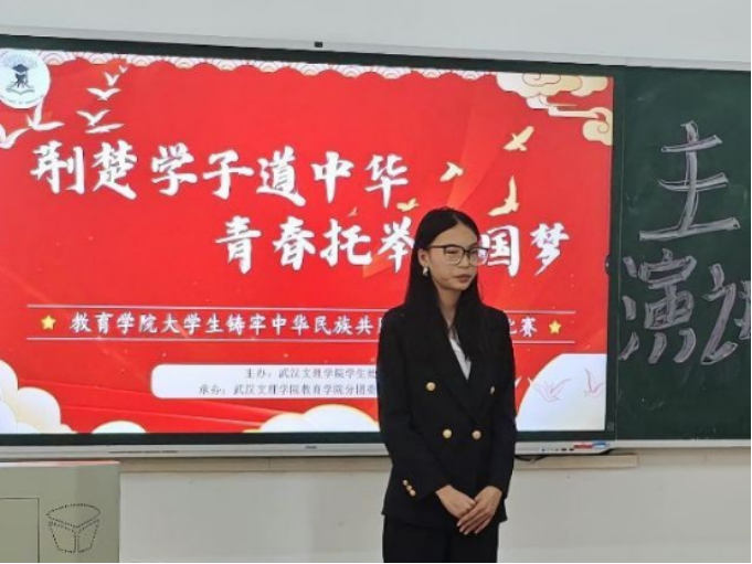 为认真领会关于加强和改进民族工作的重要思想,深刻展示荆楚大地中华民族多元一体内涵和中华文化基因。5月7日中午,太阳成tyc33455ccwww于5-119教室举办“荆楚学子道中华,青春托举中国梦”主题演讲比赛。莅临本次活动的嘉宾有太阳成tyc33455ccwww分团委书记高文佳、太阳成tyc33455ccwww员工会主席张东旭、周婷婷,比赛由韦盛航主持。