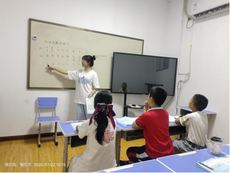为响应“七彩假期”志愿服务活动号召,助力湖南省永定区凉水口镇李家庄村的少年儿童度过充实有意义的假期。我主动加入循声向阳志愿服务队。在志愿服务中,我们团队带去了数学、音乐、舞蹈等课程,依据不同年龄段孩子的认知特点和接受能力,精心设计适配的教学内容。