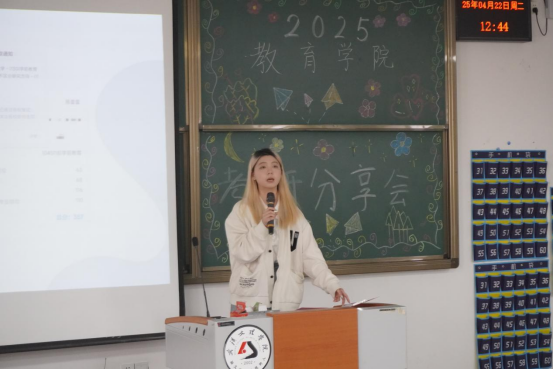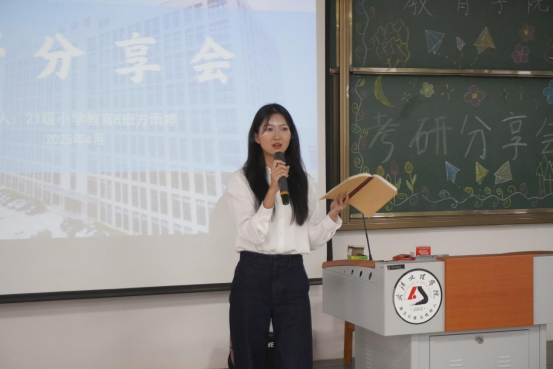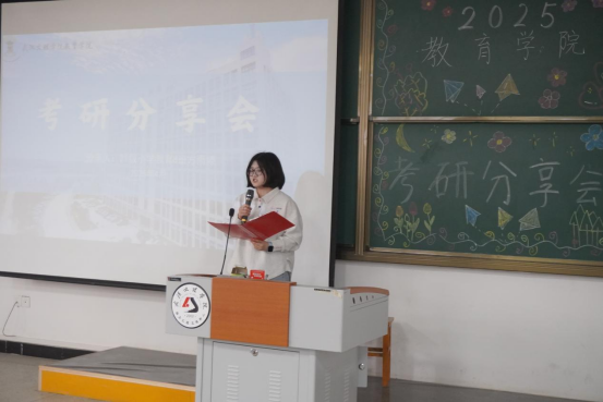 分享会伊始,主持人介绍了本次活动的目的和流程。随后,严启瑞、占妍、王琼、王羽桐、易蕾蕾、方雨婷、项婷七位考研成功同学依次上台,结合自身的考研经历,毫无保留地分享了宝贵的经验和心得。