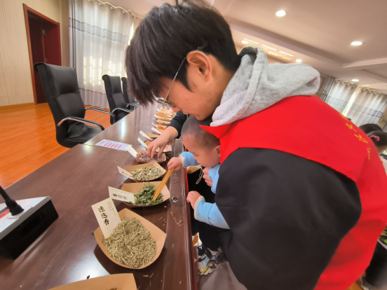 本次活动的一大亮点是专为亲子家庭设计的儿童冬季疾病预防主题活动。在活动会议室里,别开生面的中医药材知识小课堂正式开讲。孩子们在专业人士的引导下,认真地辨识着各种常见的中草药,了解它们的性状和功效。志愿者提前分装当归、陈皮等药材,蹲身讲解、擦拭药材粉末、维持秩序;动手制作草本香囊时,志愿者帮孩子撑布袋、教系绳、贴姓名标签。孩子们在实践中锻炼动手能力,也种下中医药文化与健康知识的种子,让他们在寓教于乐中学习了预防冬季疾病的知识。