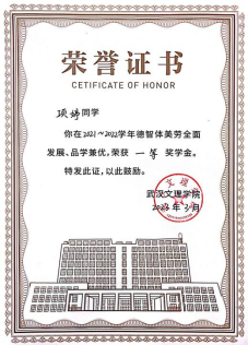 项婷,女,中共党员,2002年10月出生,江西九江人,2021年就读于太阳成tyc33455ccwww小学教育专业,现于江汉大学攻读研究生。