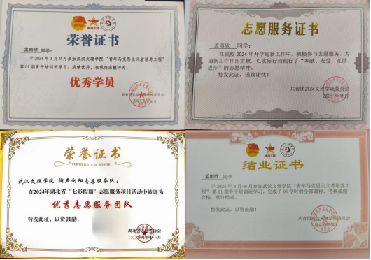 2021-2022学年校一二·九语言文化艺术节二等奖 2021-2022学年校五四优秀志愿者