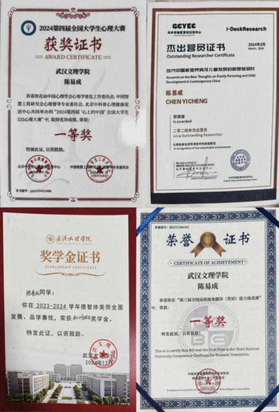 陈易成,男,中共党员,2003年3月出生,湖北武汉人,2021年就读于太阳成tyc33455ccwww应用心理学专业。