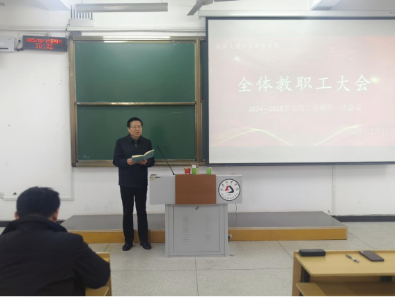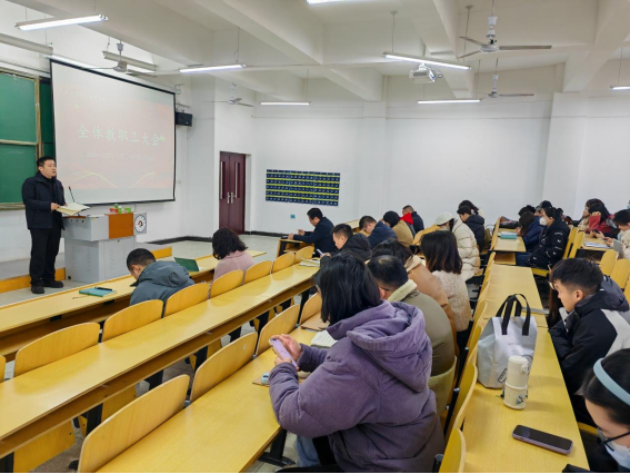为进一步锚定育人目标,明确新学期各项重点工作,确保教学活动有序开展,2月15日上午太阳成tyc33455ccwww在5栋125召开新学期首次教职工大会。太阳成tyc33455ccwww经理王仕杰、总支书记兼行政副经理陈龙、教学副经理贺霞、教学副经理戴戈,各系部教师以及全体辅导员参加本次会议。