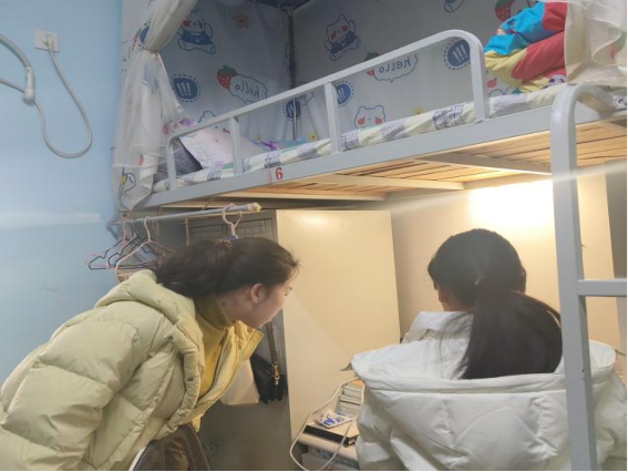 在查寝环节,辅导员团队深入员工宿舍,重点排查违规电器、私拉电线等安全隐患,并现场普及用电安全知识,提醒员工防范电信诈骗。走访过程中,辅导员还耐心解答员工在学业规划、生活适应等方面的困惑。