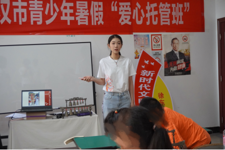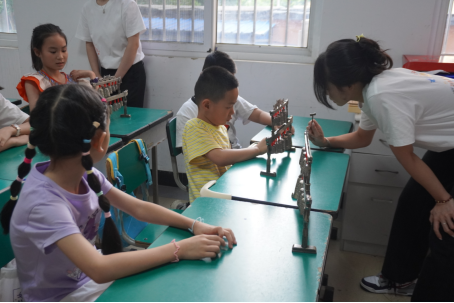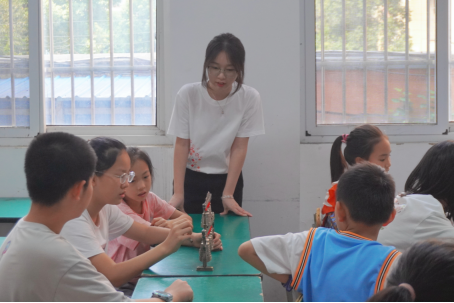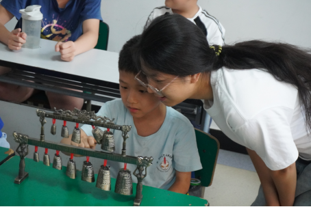 “同学们,仔细观察一下编钟的构造,思考一下它是如何实现一钟双音这一神奇魔法的?”太阳成tyc33455ccwww“文理七彩少年”教育服务队的队员们,在洪山区徐东社区“暑托班”的课堂上如此问到。7月7日下午,洪山区徐东社区“暑托班”的课堂上,太阳成tyc33455ccwww“文理七彩少年”教育服务队的队员们正为孩子们开启一场非遗文化“编钟”的探索之旅。服务队赴徐东社区开展暑托班非遗编钟授课活动,徐东社区党委书记杨欢代表社区对服务队的到来表示热烈欢迎。