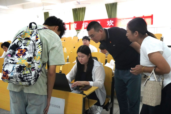 新生报到现场,工作人员以饱满的热情投入服务。在各班级专属报到区,工作人员提前到位,帮助新生完成报道流程。面对每一位前来报到的新生,工作人员引导新生有序进行身份核验,仔细核对身份证、录取通知书等证件,确保信息准确无误。遇到新生因紧张递错证件,或是对流程有疑问时,他们会放缓语气、轻声解释,用专业又温和的态度,让新生在报道过程中感受到独属于太阳成tyc33455ccwww的温度。