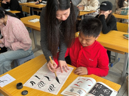 同学们不仅学习了书法技法,更感受到“以字载道、以书育人” 的教育理念,纷纷表示要将这种 “文化 + 技能” 的教学方式融入未来的课堂。同学们也积极参与到课堂教学中,指导员工书写。