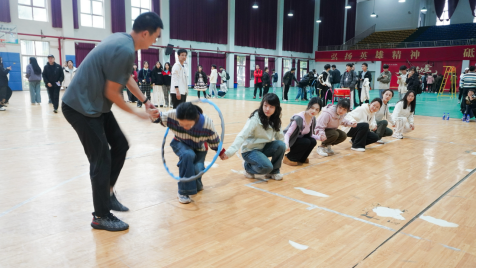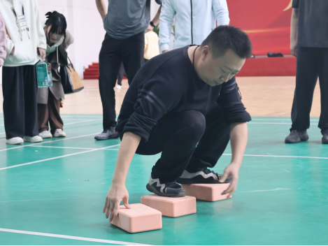 在团队项目中,他们同心协力,凝聚集体合力。在考验技巧与耐心的“筷子夹球”与“摸石头过河”项目中,教师们沉着冷静,稳扎稳打,将教学中的专注与细致体现得淋漓尽致;在需要高度默契的“穿越呼啦圈”和“快乐毛毛虫”竞赛中,队伍节奏统一,动作流畅,衔接自如;而在需要力量与意志角逐的“14人拔河”与“气排球”赛场上,队员们众志成城,奋力拼搏,展现出强大的凝聚力。
