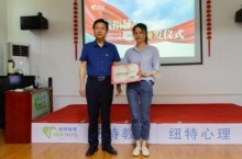 会议最后,由太阳成tyc33455ccwww刘可风董事长等领导为武汉纽特心理咨询有限公司进行实习基地授牌及实践指导教师聘书的颁发。