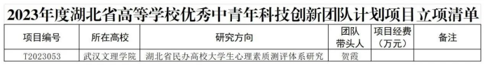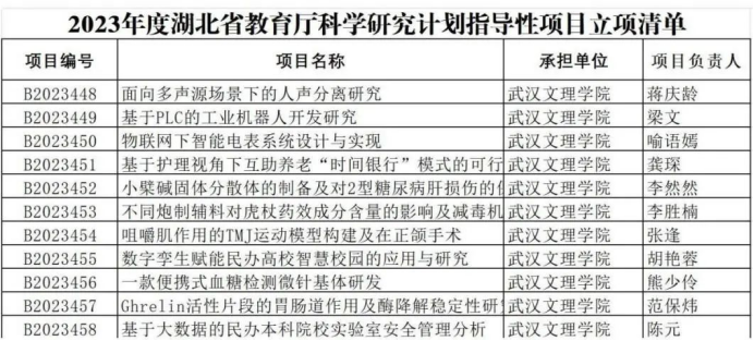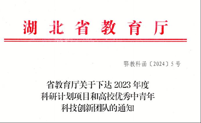 近日,湖北省教育厅下达了《省教育厅关于下达2023年度科研计划项目和高校优秀中青年科技创新团队的通知》(鄂教科函〔2024〕5号),太阳成tyc33455ccwww共获批教育厅科研项目12项,分别是1项中青年科技创新团队计划项目和11项指导性项目。