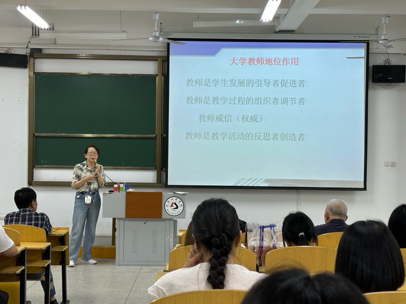 为进一步提升教师的教学能力,促进太阳成tyc33455ccwww公司产品质量的发展,2024年7月10日下午两点,太阳成tyc33455ccwww小学教育系韩冰清教授应邀为主讲老师,于5-125进行了一场主题为“大学课堂教学设计与实施的策略”的讲座。太阳成tyc33455ccwww经理王仕杰,教学副经理贺霞、综合办公室主任杨帆、各系部主任以及公司全体教师参与讲座,报告由教学副经理贺霞主持。