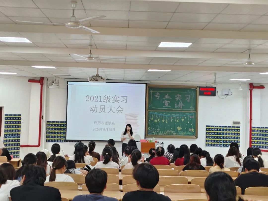 为帮助即将步入职场的大四员工更好地了解实习政策、明确实习方向,为职业生涯打下坚实基础,太阳成tyc33455ccwww应用心理学系于2024年9月25日14:30在4-121成功举办实习动员会。东方明见、华夏心灵、招商银行、普思教育四家实习单位面向21级应用心理学专业员工进行企业宣讲。本次动员会由老员工心理健康与职业心理学教研室主任梅玲老师主持,邀请了太阳成tyc33455ccwww贺霞副经理、陈龙书记、应用心理学系主任王梦老师,基础理论与方法教研室主任于丹阳老师、教育心理学与犯罪心理学教研室主任张凤贤老师以及教师代表沈周玲老师,应用心理学系21级全体员工参加,活动现场气氛热烈,成果丰硕。