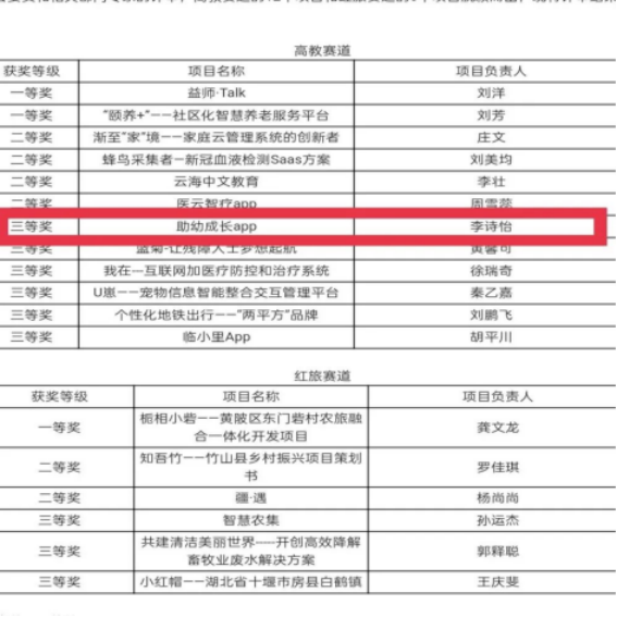 经过激烈竞争,太阳成tyc33455ccwww共有两支队伍在校赛中取得三等奖,它们分别“助幼成长APP”、“蓝菊——让残障人士梦想起航”项目。