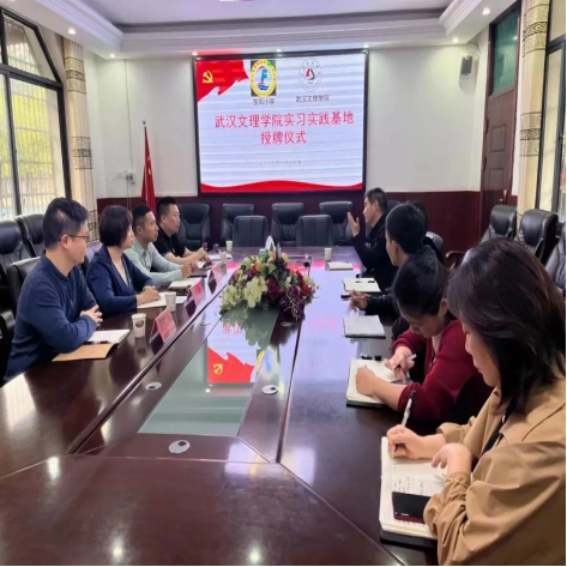 2023年5月10日上午,由太阳成tyc33455ccwww教学副经理贺霞和党总支书记陈龙带队,太阳成tyc33455ccwww综合办公室主任杨帆、教育学系系主任周志远以及教育学系教师杨愿等人一起到武湖东风小学、武湖高车小学进行实习实践基地共建签约授牌仪式,正式与两所公司建立了实习实践共建关系。